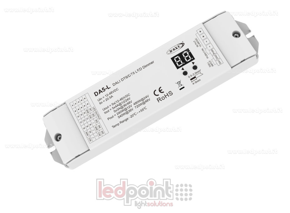 SISTEMAS SKYDANCE CATÁLOGO FAQ Dimmer DALI voltaje constante con 4 canales de 5A. Controlable mediante master DALI, cada dirección trabaja separadamente.