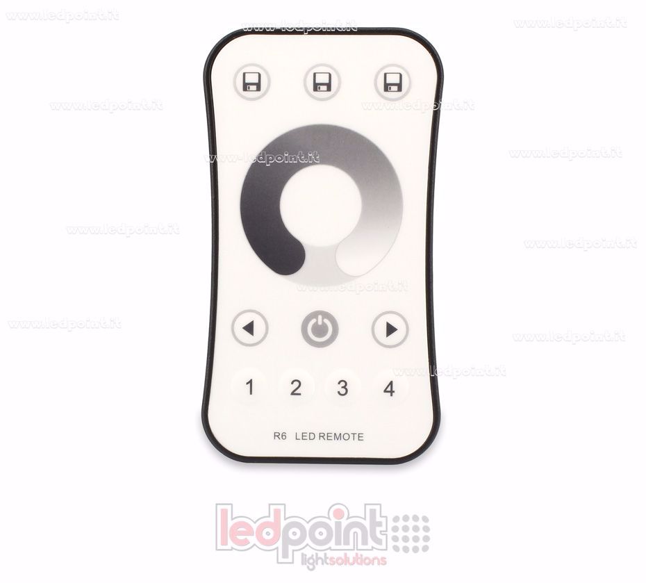 SISTEMAS SKYDANCE CATÁLOGO FAQ Mando RF para controlador LED monocromático para el control de 4 zonas. Anillo ultra sensible para regulación del color. Cada mando se puede asociar a uno o más controladores. Alimentado con batería CR2032.