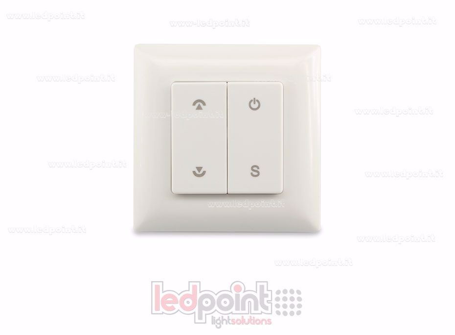 SISTEMAS SKYDANCE CATÁLOGO FAQ Mando a distancia de pared RF mono zona para tiras monocromáticas. Cada mando se puede asociar a uno o más controladores. Alimentado con batería CR2032. Fácil de instalar en cada superficie.